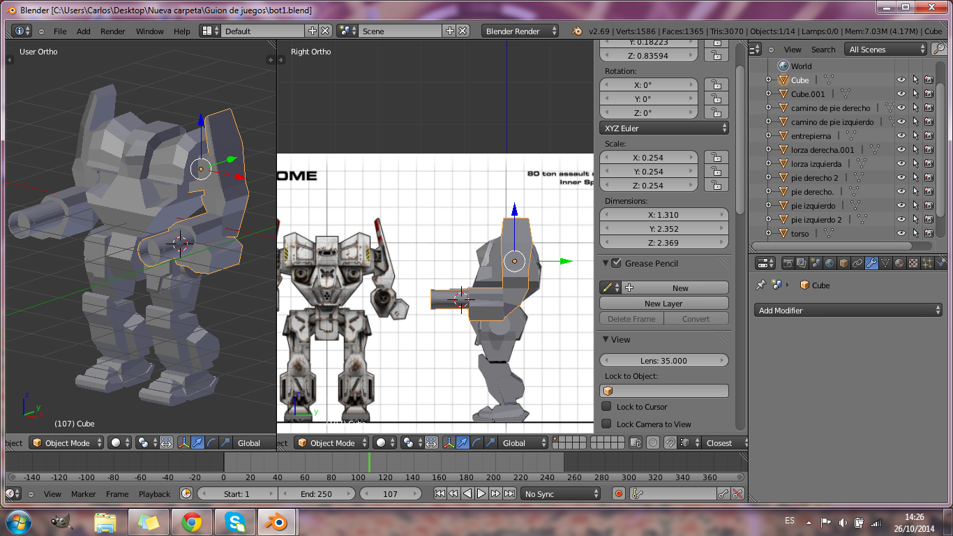 Le puse un armature por todo el cuerpo (extruyendo cada lado )cuando termine le di a todos los huesos,click derecho bone.Despues seleccione el modelo y luego los huesos a bone wight y modo poser y cuando muevo por ejemplo el pie rota pero el torax si se mueve alguna idea?