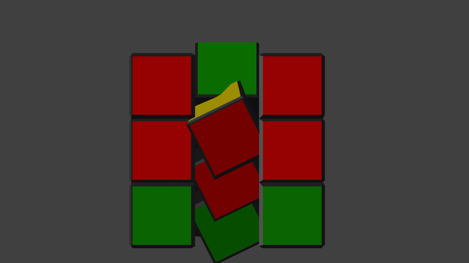 Intento hacer una animación con el cubo de rubbik y en principio parece que todo va bien. Cuando giro sobre uno de sus ejes (rx, ry, rz), el giro lo hace correctamente, pero al meterle los fotogramas clave (posición+rotación) vienen los problemas. A veces hace el giro corréctamente y otras no.