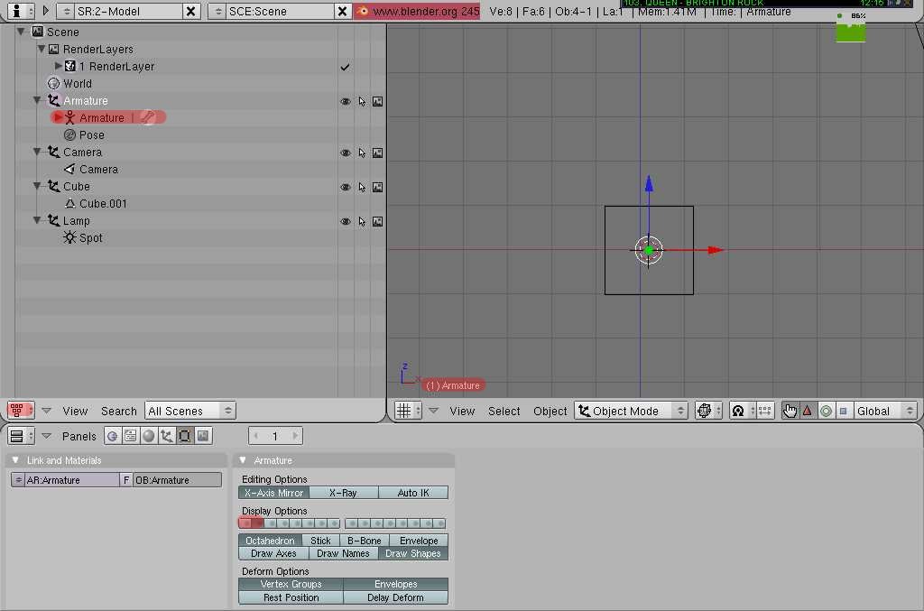 luego seleccione la malla y no puedo regresar a seleccionar el armature porque desaparecio.