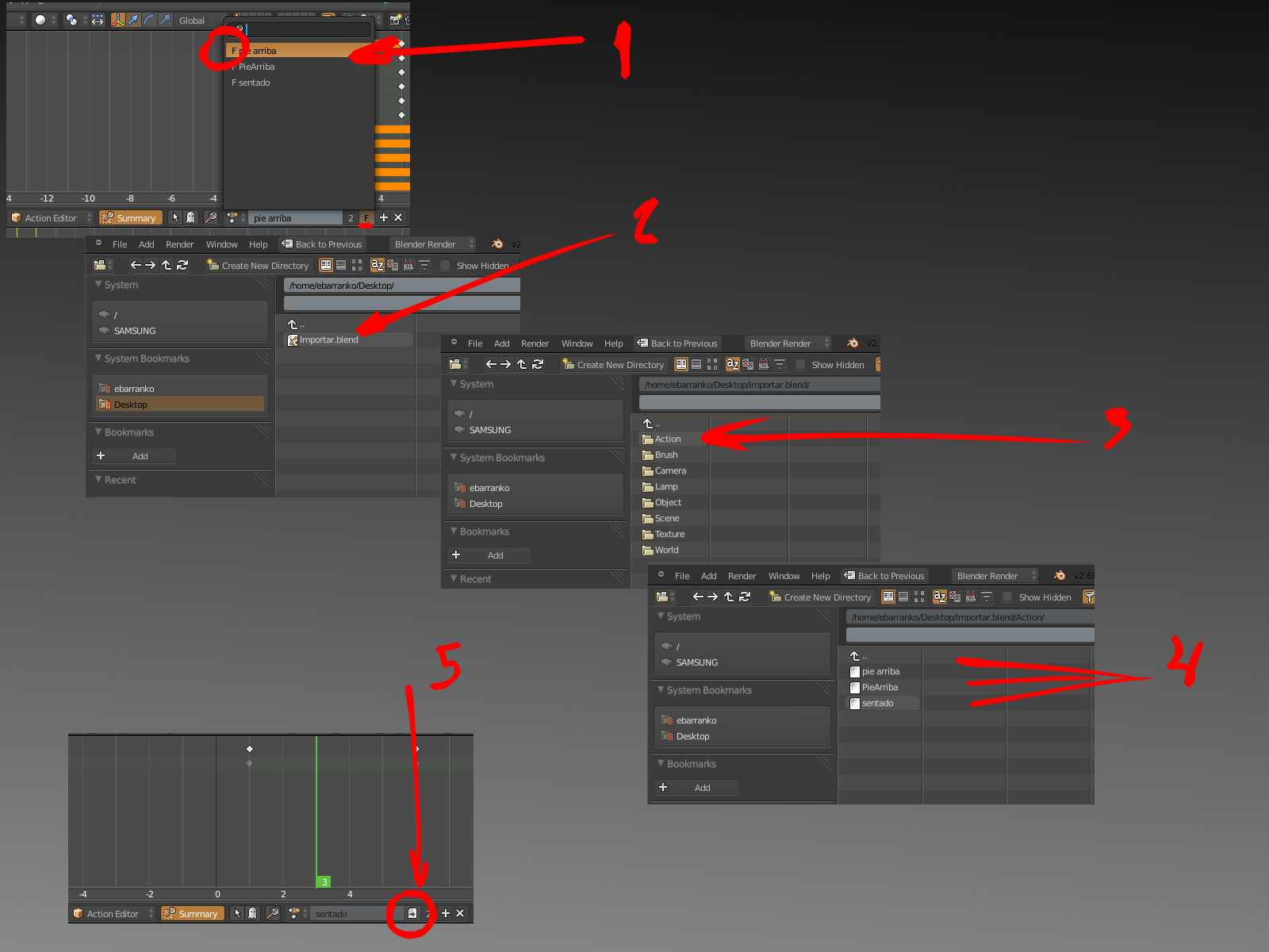 1.Blender guarda en el archivo blend, poses, acciones , materiales... activando la letra F que esta frente al nombre.
