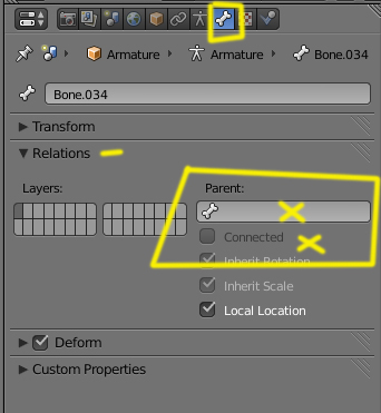 Seleccionalo y mira en Bone > Relations que tenga desmarcadas las dos casillas.