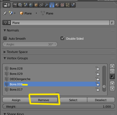 Y si te refieres a hacerlo todo manualmente, sería ir a ese panel de los VERTEX GROUP y escribir a mano el nombre del Hueso, luego seleccionar los vértices que afectan a ese hueso y presionar el botón ASSIGN (asignar). Y repetir con todos los huesos.