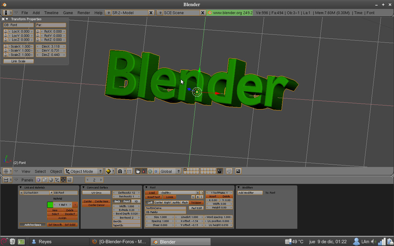 Tengo un problema con la modificación de Dim Z en la caja de [Transform Properties], esto me sucede con los textos. Aclaro que soy absolutamente nuevo en Blender y no he usado programas similares.