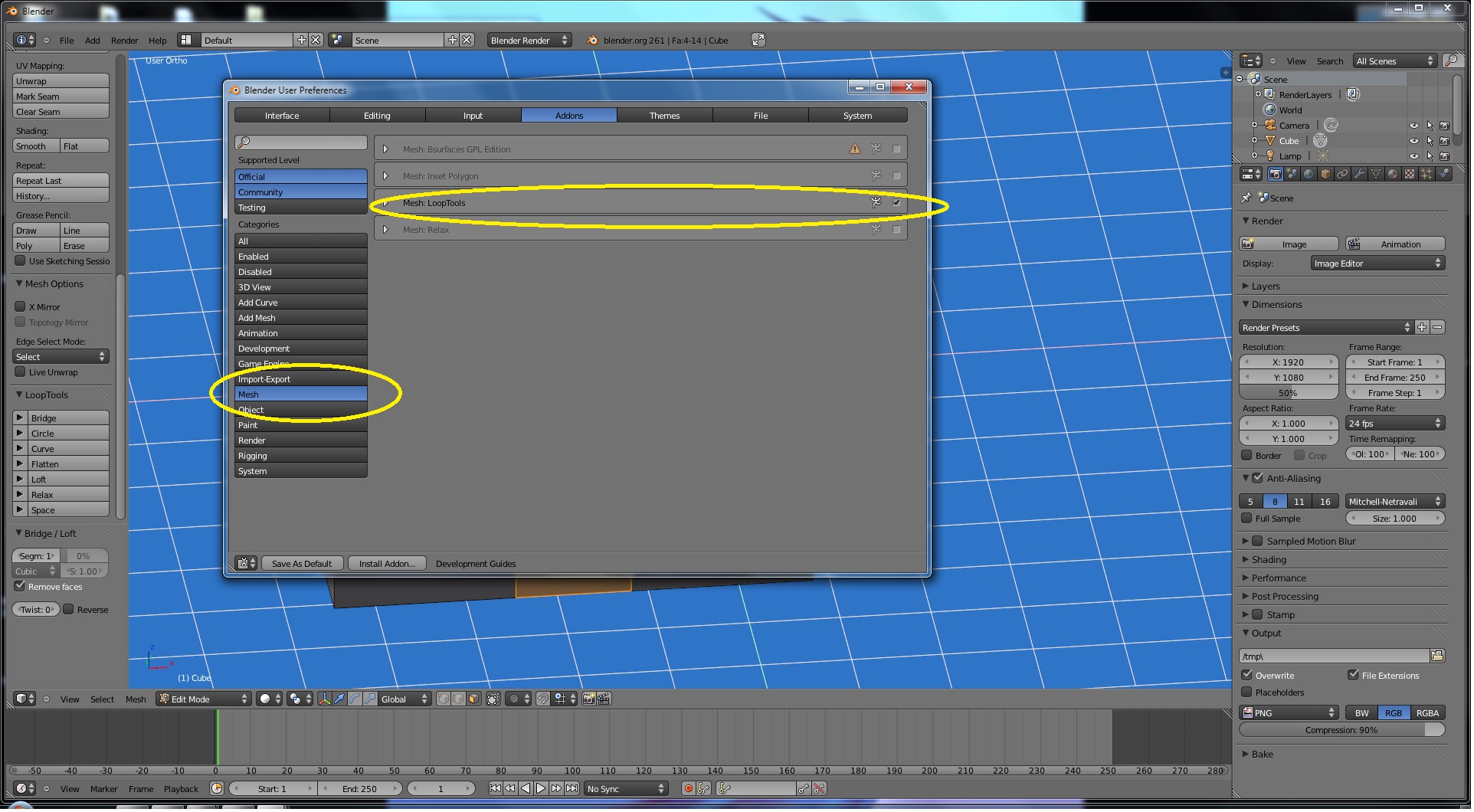 Soy yo de nuevo, luego de investigar un poco ya en mi casa encontre como activar esa funcion es mas facil de lo que crees tenes que ir a el user preferences (Crtl+Alt+U). te abre la ventana y luego te vas a add-ons, luego te vas a la pestaña mesh y buscas la opcion Mesh:LoopTools la seleccionas y salvas los cambios con Save As Default y listo!