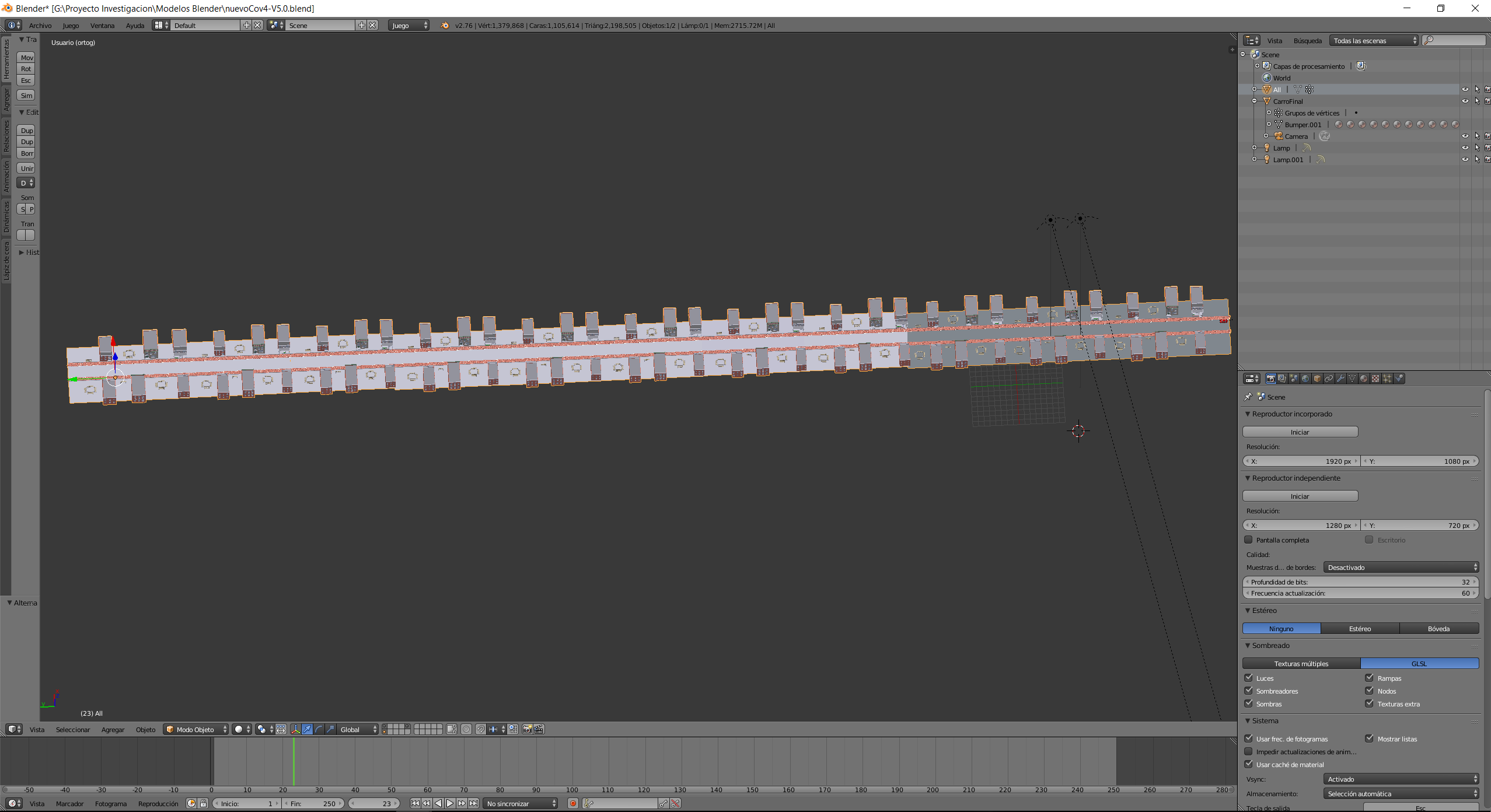 Poseo el siguiente problema, estoy haciendo una pista para un carro, las estructuras si miran en el consumo de memoria RAM de blender; ademas al ejecutar la aplicación internamente corre sin problemas, pero al usar el reproductor independiente o exportar el juego :( no se que pasa.