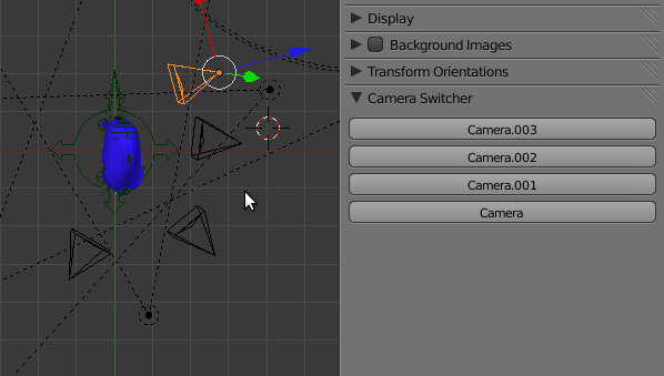 Solo es un panel en las propiedades de la vista 3d que muestra un botón por cada cámara que tengamos en la escena y al hacer click te pone en esa cámara como si seleccionaramos la cámara y pongamos Ctrl+0. Si agregamos cámaras a la escena se agregan botones, desaparecen si borramos cámaras y si cambiamos de escena se construye de nuevo el panel. La mayoría de las cosas las hace solito la api, es casi mágico.