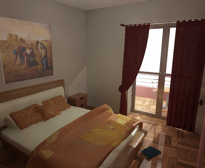 No estoy muy segura que es lo que te esta fallando, la escena me parece muy hermosa, el único detalle que veo es la forma en como entra la luz, no se proyecta en las almohadas, tal vez cambiando el tipo de iluminación y verifica que tus materiales puedan proyectar sombras, otro detalle es que las cortinas estan muy gruesas yo las haria semi transparentes y modificaría los shaders.