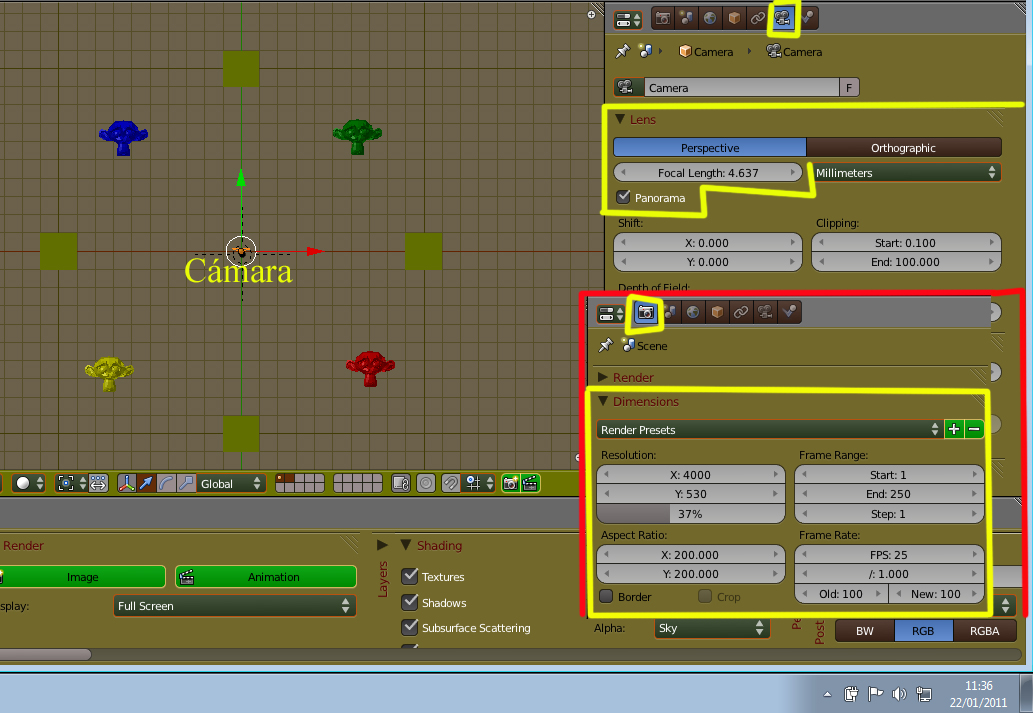 Hola, estoy haciendo una especie de museo virtual para mi Tesis de grado, es una sala de museo y una plaza publica donde se llevara a cabo una muestra fotografica, el caso es que quiero que la experiencia de usuario cuente con vistas en 360 grados de los espacios que YA realice en 3d en blender 2.49. El asunto es que quiero renderizar panoramas de 360 grados en el eje \"X\'\' 180 grados en el eje \"Y\" en internet consegui varios tutoriales sobre como renderizar panoramas con la opcion PANO y con XPARTS mayor de 1, pero no consigo que la camara valla rotando tantas veces como XPARTS sino que lo que la camara enfoca se renderiza en tantas partes como XPARTS dice que haga. No se si explico bien el problema, el caso es que no puedo lograr mi propocito de renderizado panoramico. Si alquien con mas experiencia puede ayudarme estare muy agradecido.