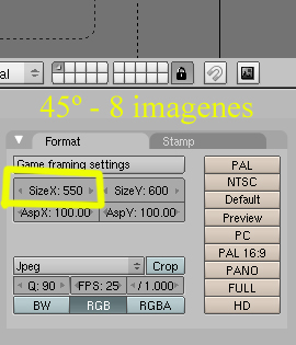 He estado mirando y lo mejor para hacerlo por imagenes diferentes con la rotación de cámara que te he explicado, pero los grados deben ser de 45 en cada uno y el tamaño de ancho ronda los 550