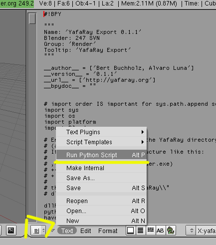 Uninstall versiones anteriores antes de instalar YafaRay. Si la secuencia de comandos de exportación no aparece en el menú de render, scripts de actualización en las preferencias de usuarios de Blender.