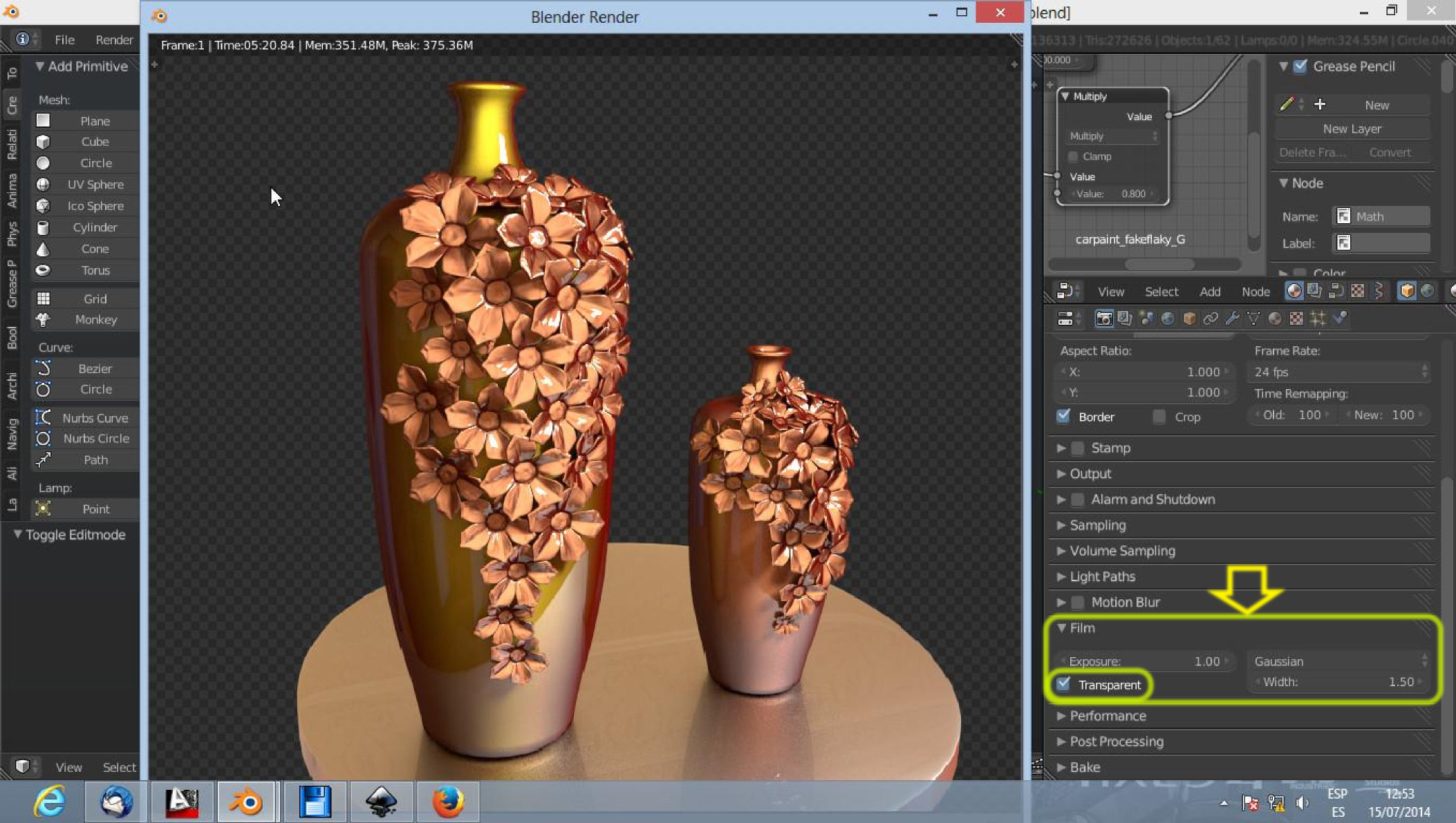 ¿Hay alguna forma de renderizar en Blender Render con el fondo transparente?
