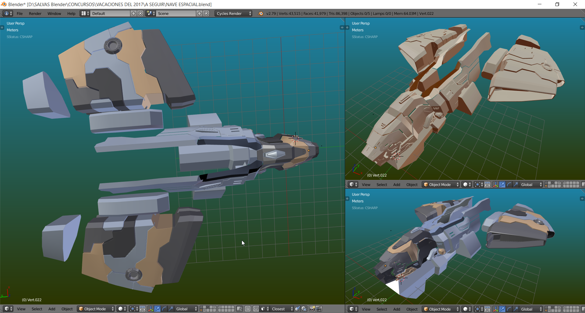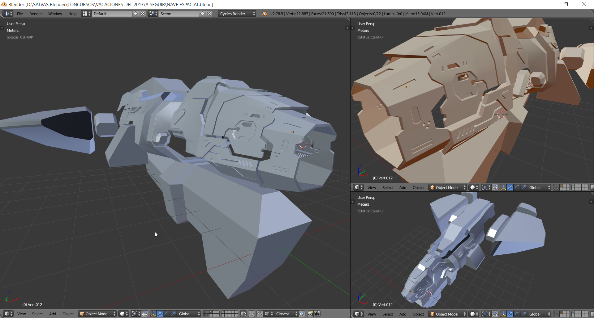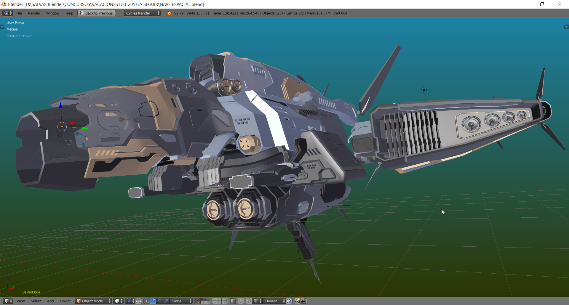 Hola a todos hace ya un tiempo para los amigos de la revista Blenderianos hice un render de una Nave espacial y queria compartirles el Render final y algunas imagenes que muestran el progreso..