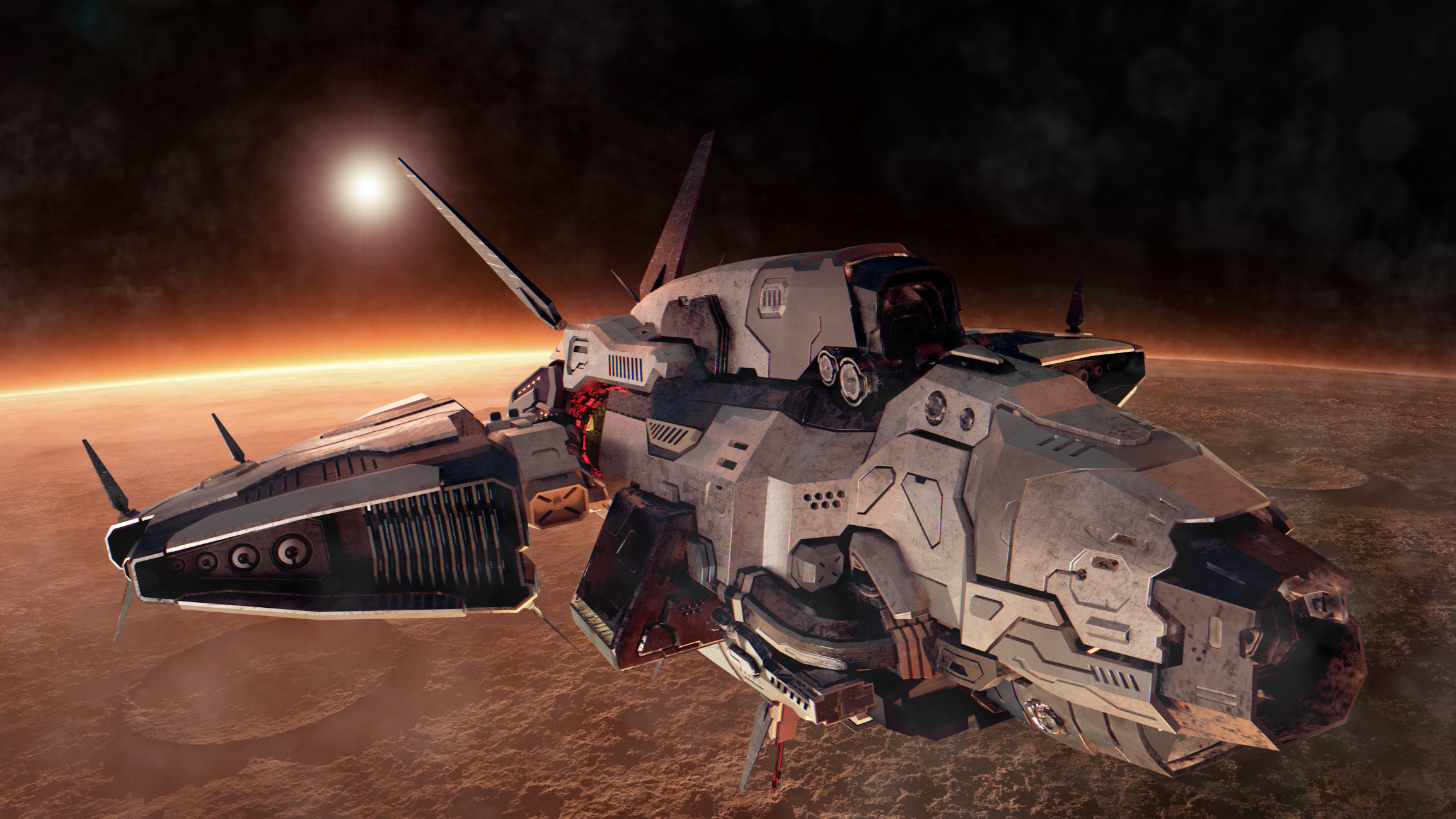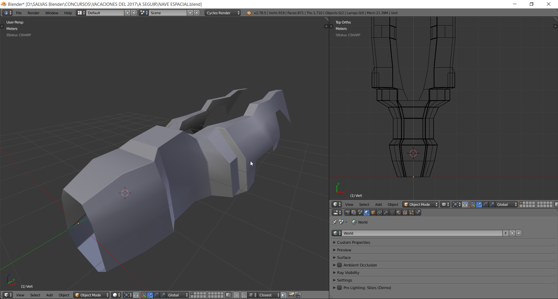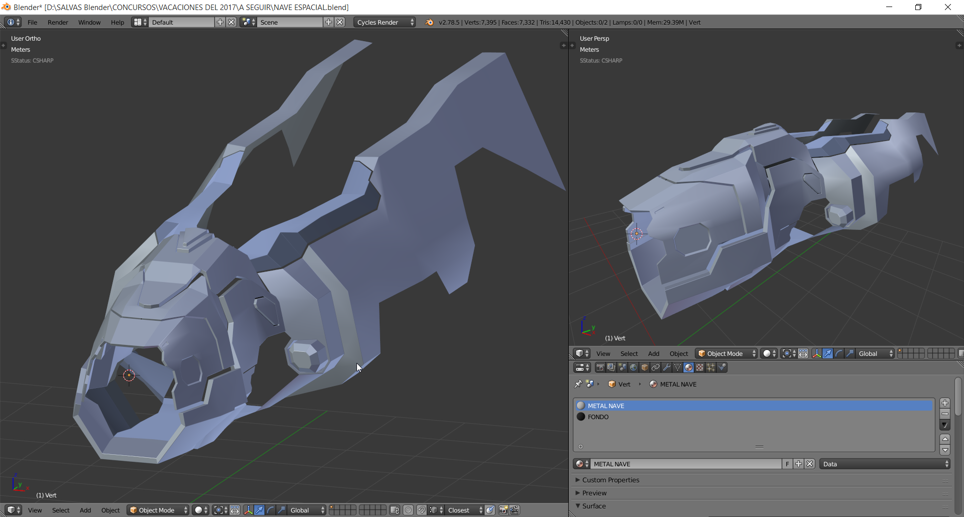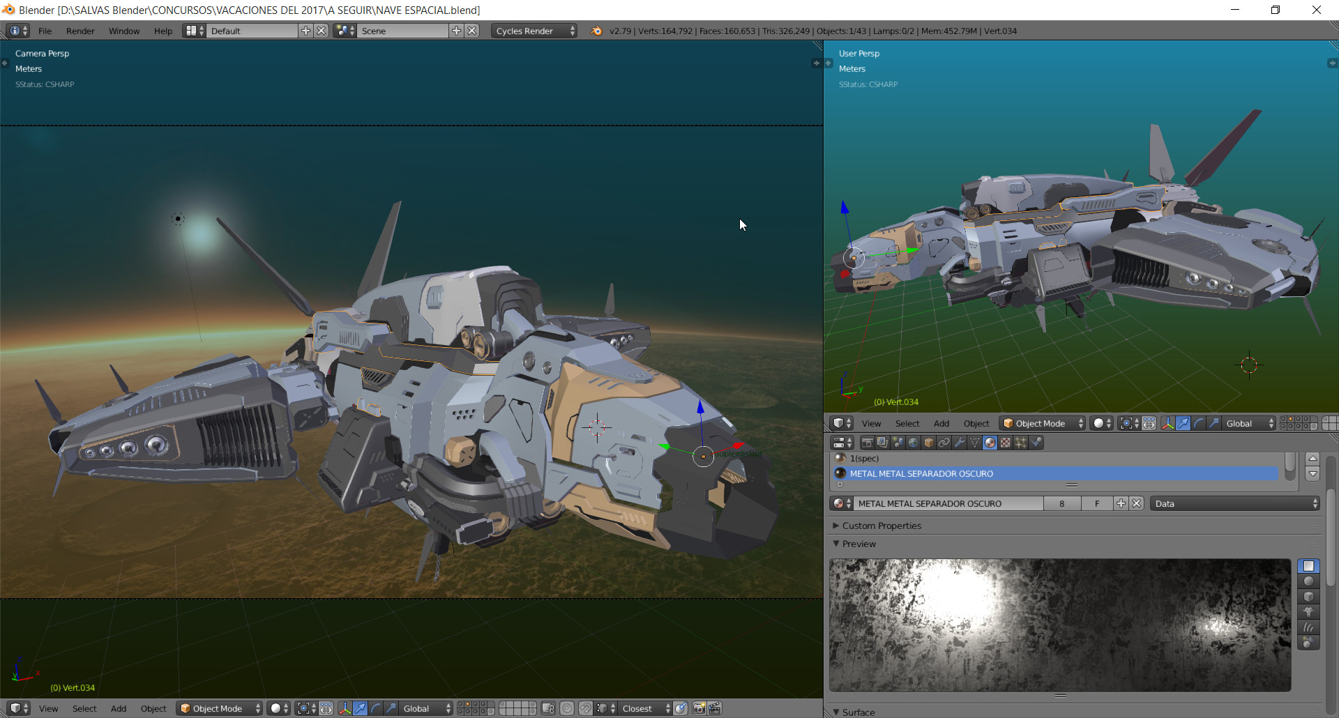 Hola a todos hace ya un tiempo para los amigos de la revista Blenderianos hice un render de una Nave espacial y queria compartirles el Render final y algunas imagenes que muestran el progreso..