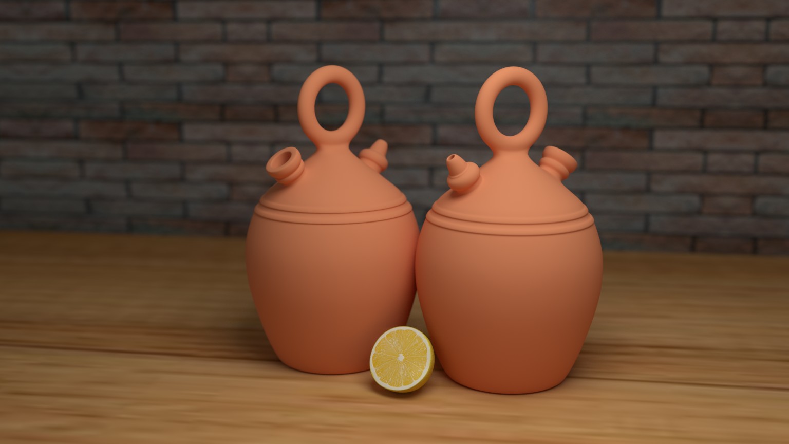 Un sencillo botijo en dos versiones. Una sin material y otro color teja...