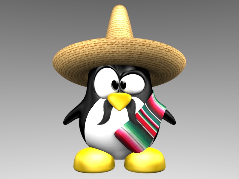 Tenia rato que quería subir este nuevo personaje, me base en el Tux de Linux, asi que lo reproduje en 3D y le di algunos toques para tener un Mexican Tux.