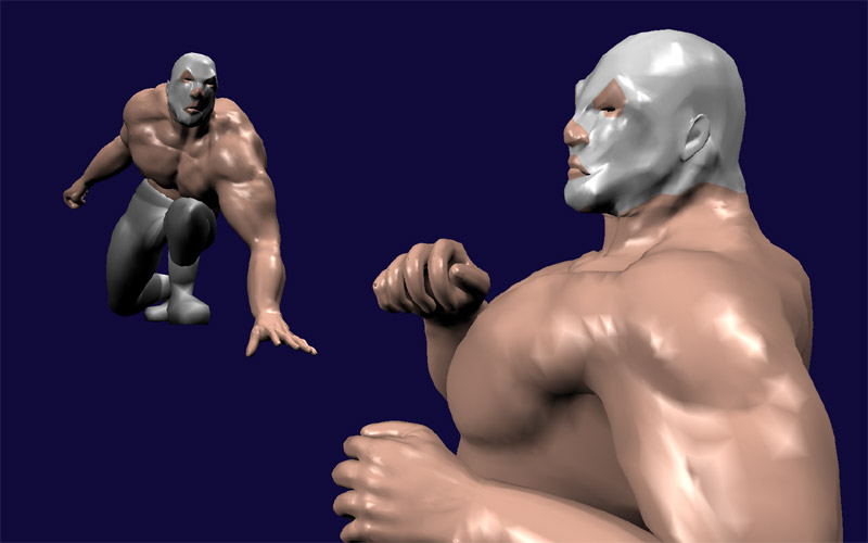 La técnica utilizada es boxmodeling, primero situé únicamente unas cuantas cajas para definir cabeza, torso, brazo, antebrazo, muslo, pierna y pie, en total 12 cajas con las que trabajé la proporción.