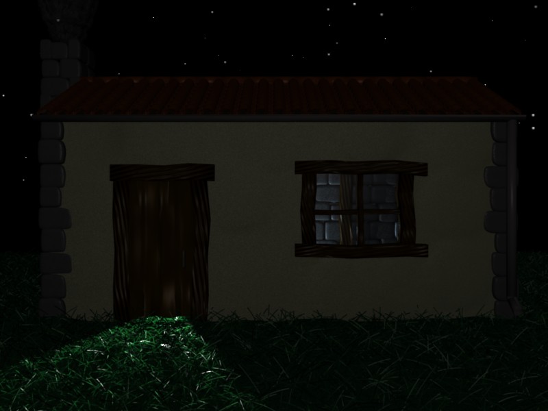 Interesante la casita de campo, tengo algunas recomendaciones que darte, primero el pasto me parece muy largo y el color un poco irreal, checa este tutorial de pasto que creo que te puede ayudar, ahora aprovechando este tutorial yo crearí­a un caminito de acceso a la casita con priedritas y que entre ellas crezca pasto, le darí­a una sensación muy bonita, también si pones texturas de piedra mohosa le dará más realismo, por ejemplo las piedras que tienes no tienen textura, en lo personal creo que lucirí­an mejor con una buena textura que tenga normal, la tuberí­a en colores cromo o metal viejo le quedarí­an bien, algo mas es la textura de madera, que a mi parecer es muy pesada, tal vez algo fino en la textura quedarí­a mejor, ahora que igual y una textura de madera vieja se le veria muy bien.