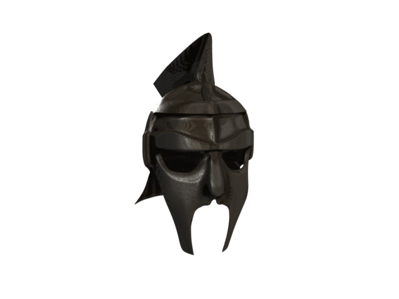 A partir de la imágen de tu casco yo modelé uno propio, y le agregué un material metálico de los repositorios de blender.
