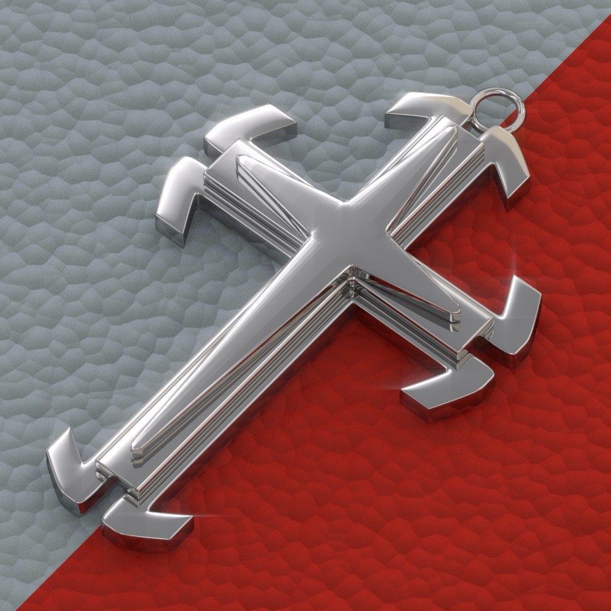 Está bueno, aunque deberias de corregir el suavizado en la parte frontal de la Cruz y usar un mapa enviroment para darle irregularida reflectiva, así tendría un poco más de realismo