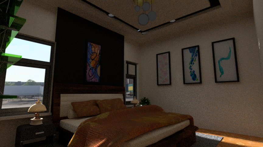 Desde que cerré pensum en la Universidad, los trabajos en 3D han disminuído considerablemente así que para mantenerme practicando, hago algunos modelos sencillos con la idea de mejorar mi presentación y aprender a usar las herramientas del programa, Hoy les traigo unos renders de un pequeño dormitorio que hice, aclaro que el modelo de algunos muebles (cama, lámparas de noche, librero, guitarra y zapatos, no son propios, la iluminación la tengo hecha con un un sol, size 0.01, y fuerza de 20.00, además de una imágen HDR de entorno con fuerza de 2, dentro del dormitorio tengo una lámpara de área, cuadrada, con fuerza de 10.00 desde el techo, no tengo oclusión ambiental activado. Espero que les guste y cualquier consejo u observación es bienvenido.