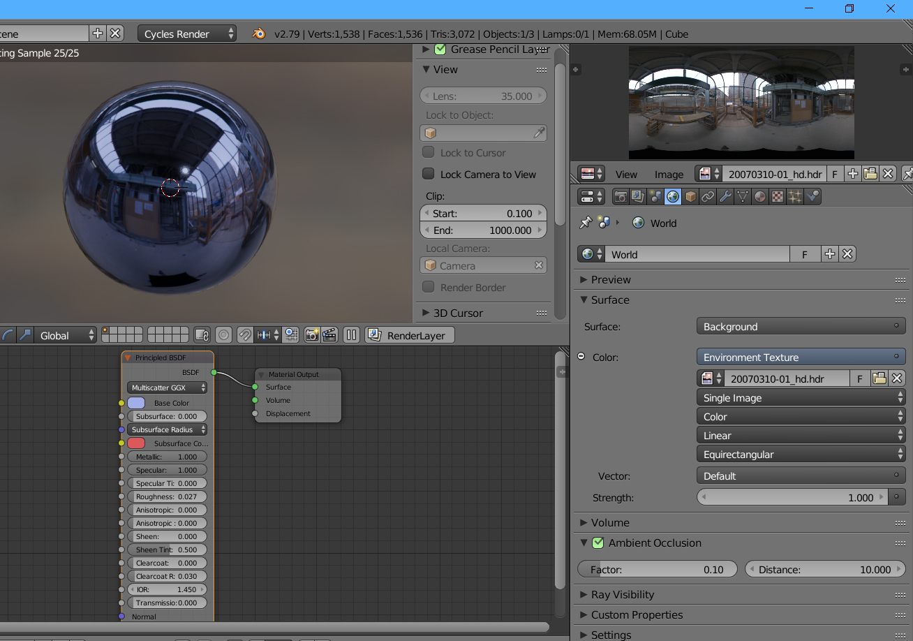 Un entorno de imagen HDR o sea, en el WORLD una textura que ilumina la escena llamada de tipo HDR