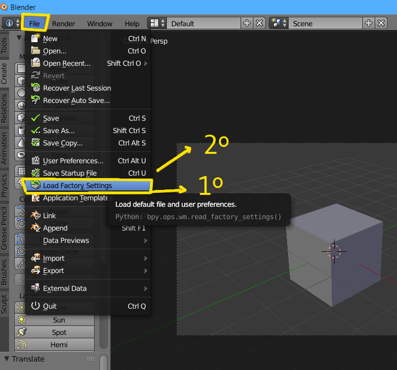 Esto te pondrá blender con la configuración de origen
