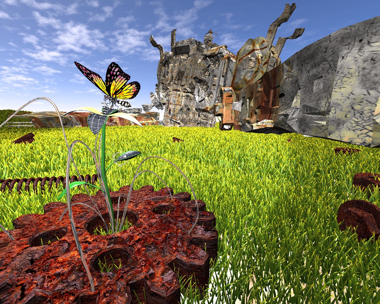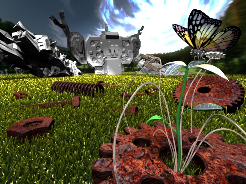 hola como estan todos bueno el dia de doy realize este render aunque aun le faltan las texturas al robot creoq ue ya va quedando ami me sigue gustando la flor de ese lado ya sera cuestion de decidir en que lado la colocaremos y pues si se le eñaden algunas otras cosas tambien las alas de la mariposa la hice un poco mas grandes bueo espero sus comentarios con respecto a los cambios que hice.