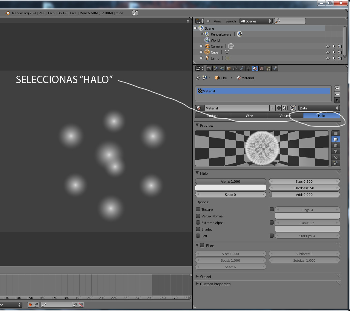 Para quien no me comprenda a lo que me refiero con brillo(Halo), dejo una imagen de un brillo en blender 2.4..