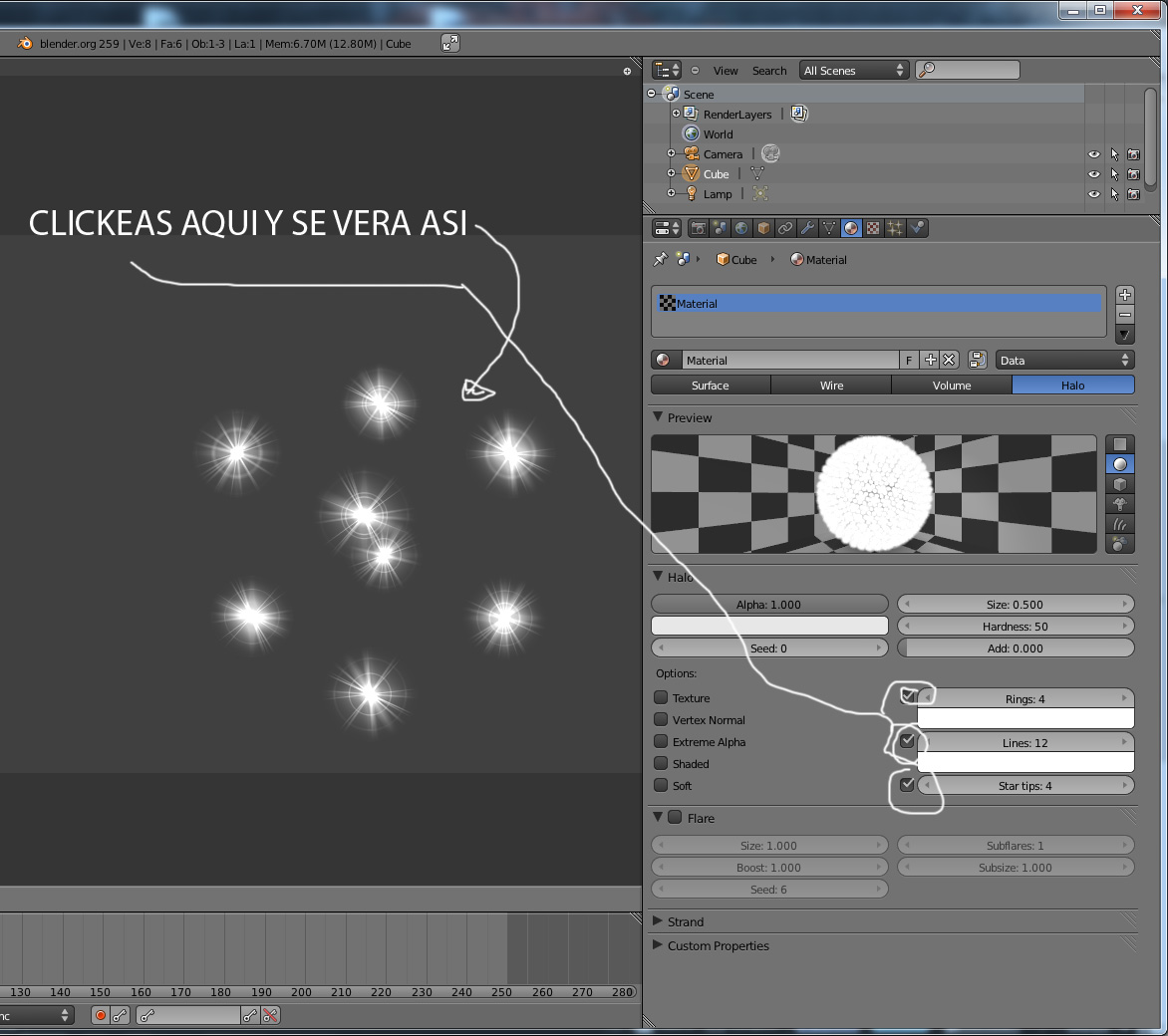 Crear estrella o brillo en Blender 2.5