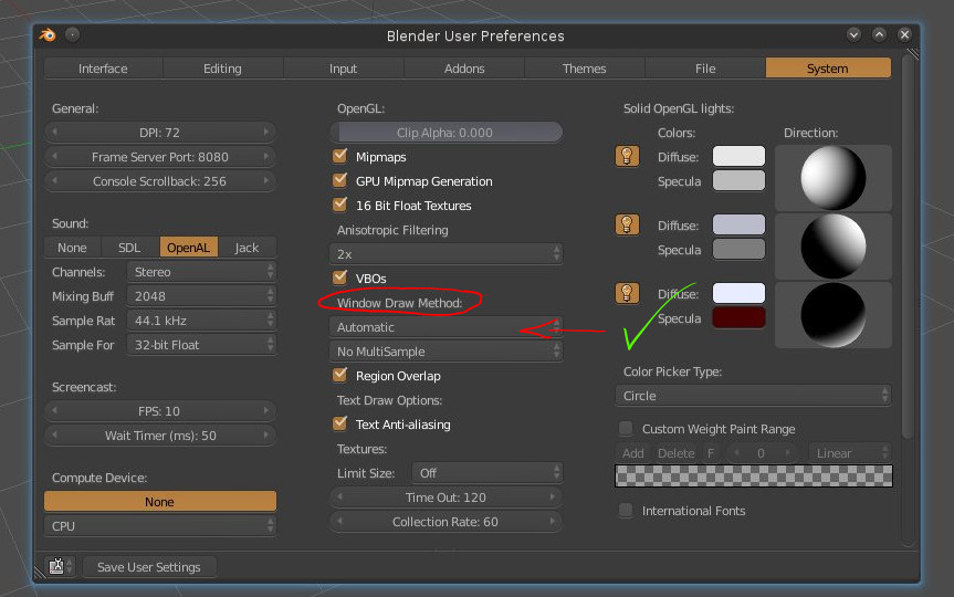 yo me deje de cosas cuando la pantalla de configuración se puso negra de manera permanente usando windows... me cambie a ubuntu y asunto arreglado, despues de tunearlo un poco me quedo mucho mas ligero que en windows y me renderizaba mas rapido.