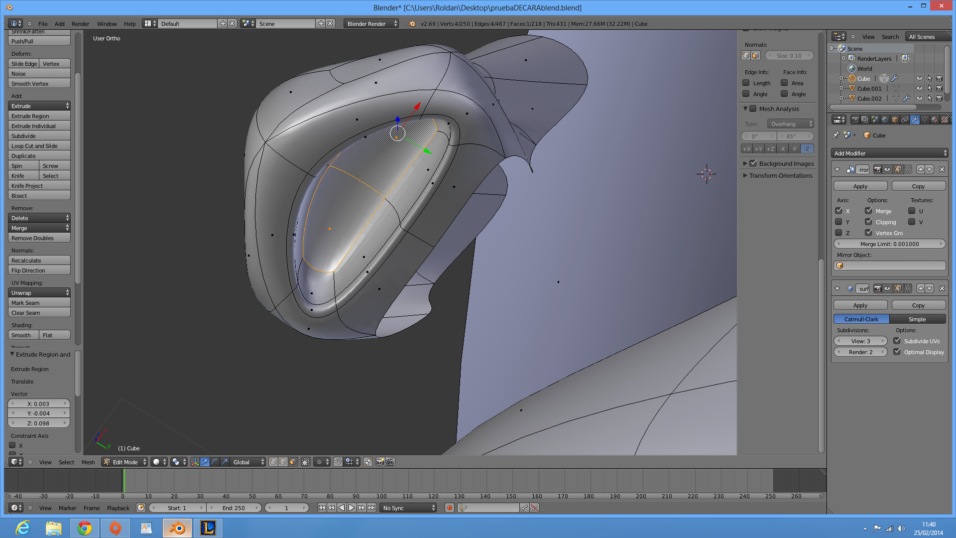 realice lo que me dijiste, pero tengo un problema y es que la arista central no quiere separarse del centro del objeto lo que trae como consecuencia un hueco, sin ningun tipo de separacion. Te dejo una imagen.