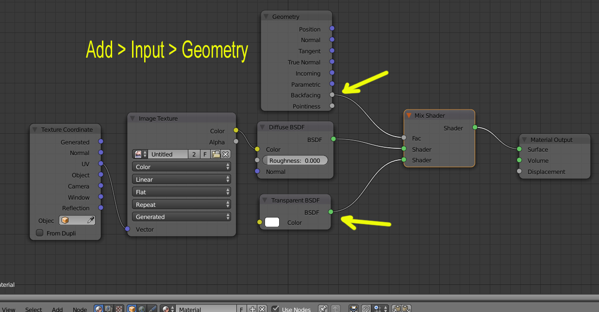 Os explico el asunto; yo lo que quiero es tener un plano (por ejemplo), que por una cara se vea el material aplicado y por la otra sea transparente, todo esto en cycles.