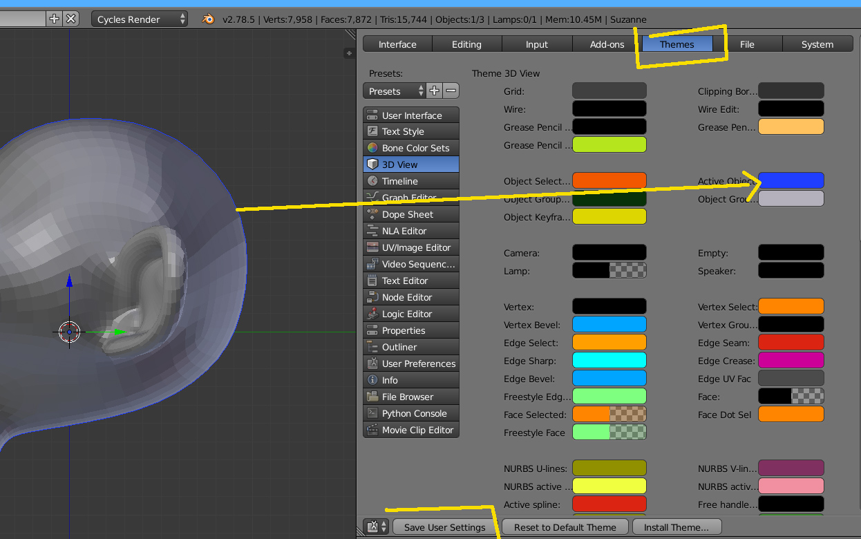 O puedes cambiar el color en User Preferences > Themmes > 3D View > Active Object y luego lo salvas con Save User Settings