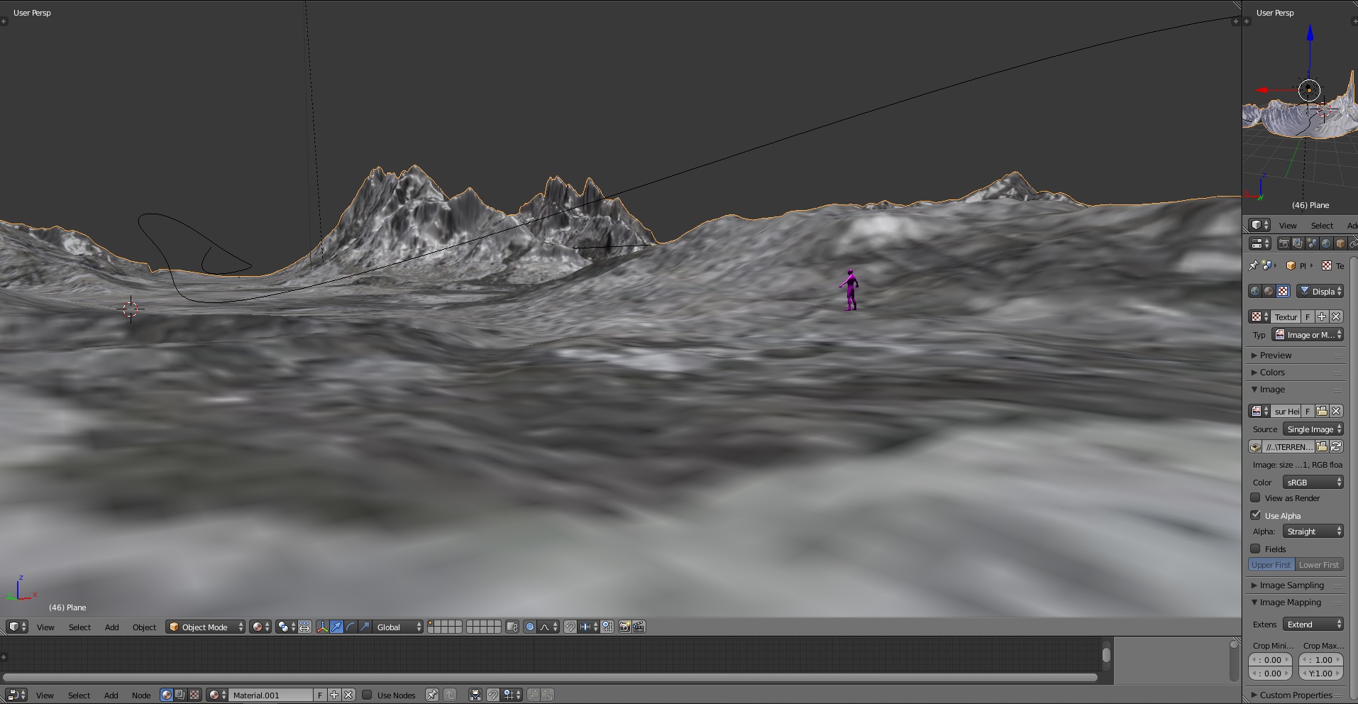 Hola compañeros estoy con un proyecto para la facultad en donde me propongo hacer caminar a mi personaje en un terreno ondulado. Éste ya esta animado y el terreno ya esta dado pero no sé cómo hacer para que si, el terreno sube, el personaje se eleve con el terreno. Les adjunto una foto para que vean de que va