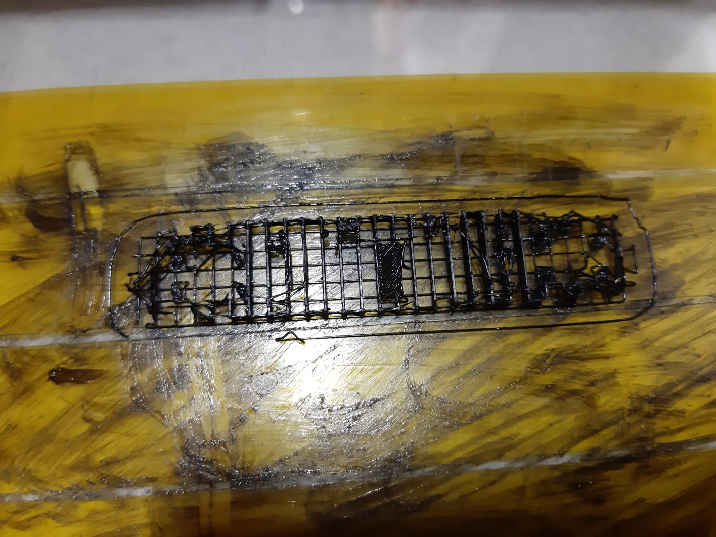 Aún así he hecho varias pruebas, dándole volumen (10, 15, 20, 30, 50 micras) y probando en Meshmixer. Con 15 micras de espesor la pieza luce mas o menos bien, y a pesar de haberla dejado todo lo mejor que he podido sin fallos, mira lo que ha impreso (foto adjunta).