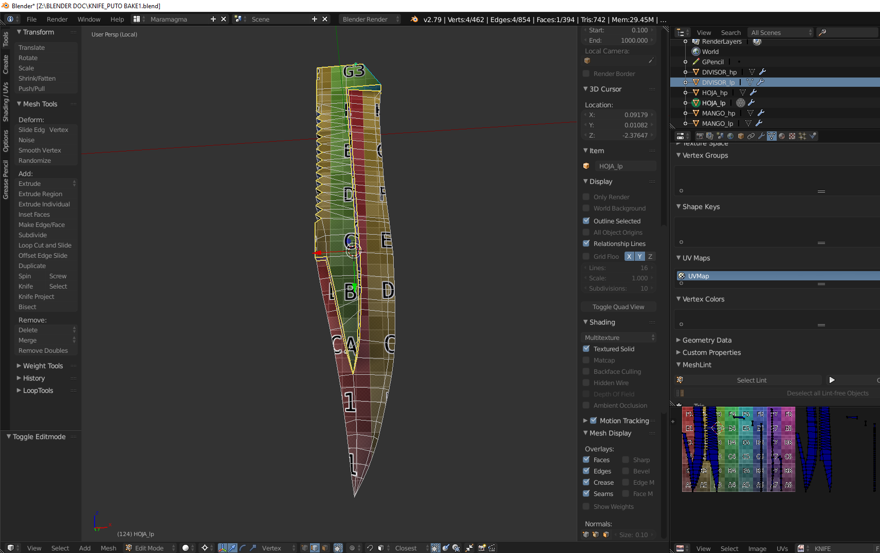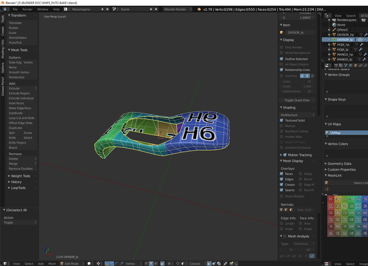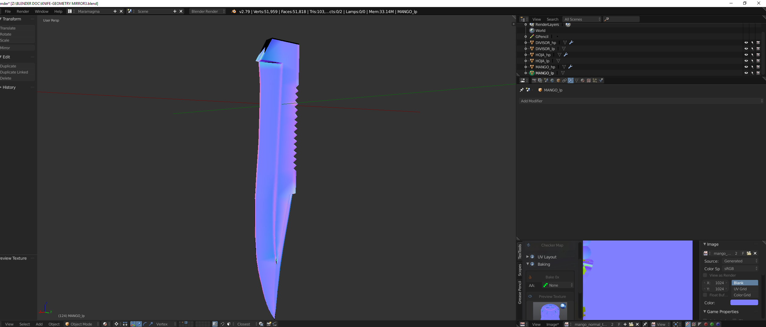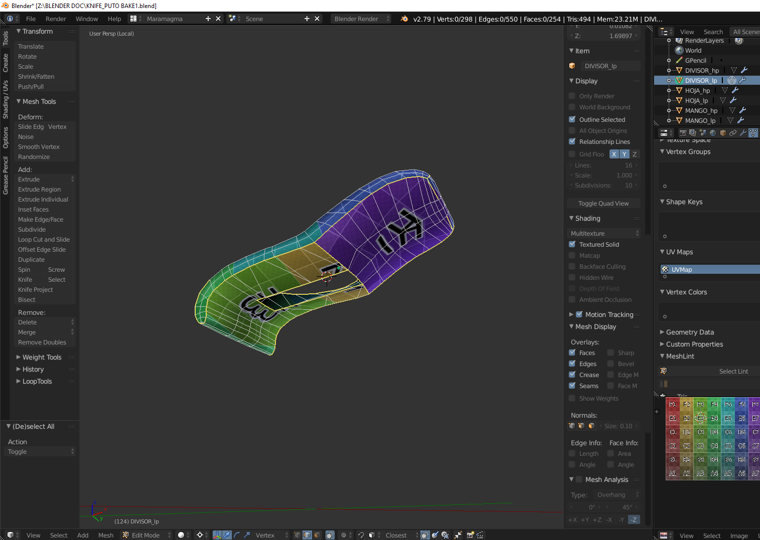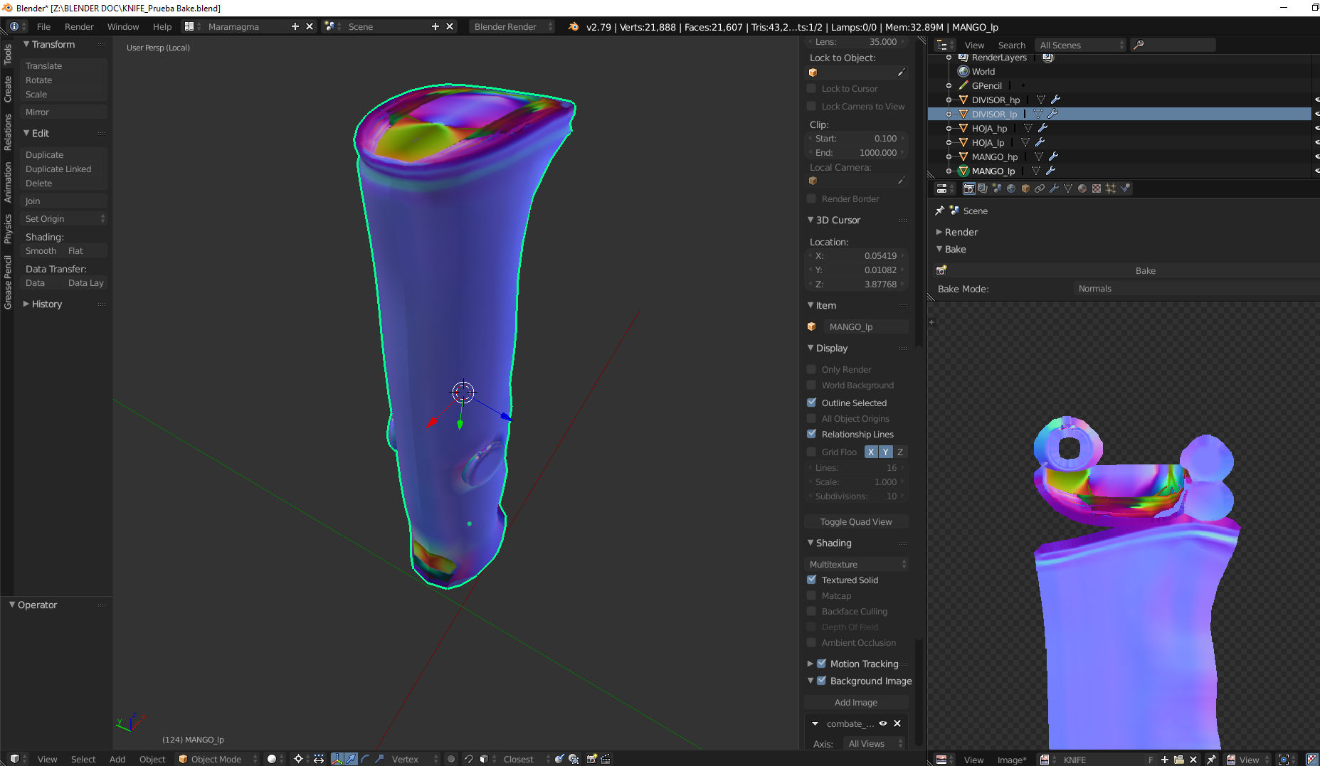 Hola a todos, tengo problemas con los bakes de un cuchillo. Conste que no los estoy tirando de la manera tradicional sino usando un addon llamado Textools. Como pueden apreciar los bakes me salen con sombras rarar y ya no se que hacer.