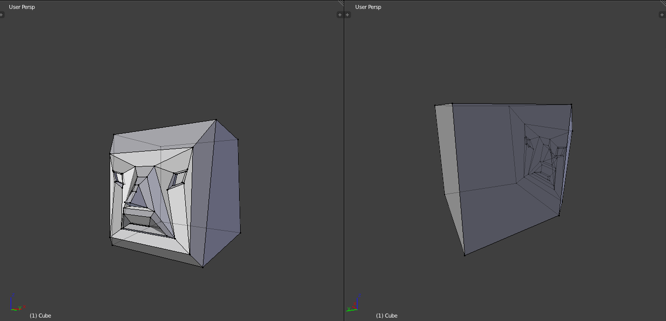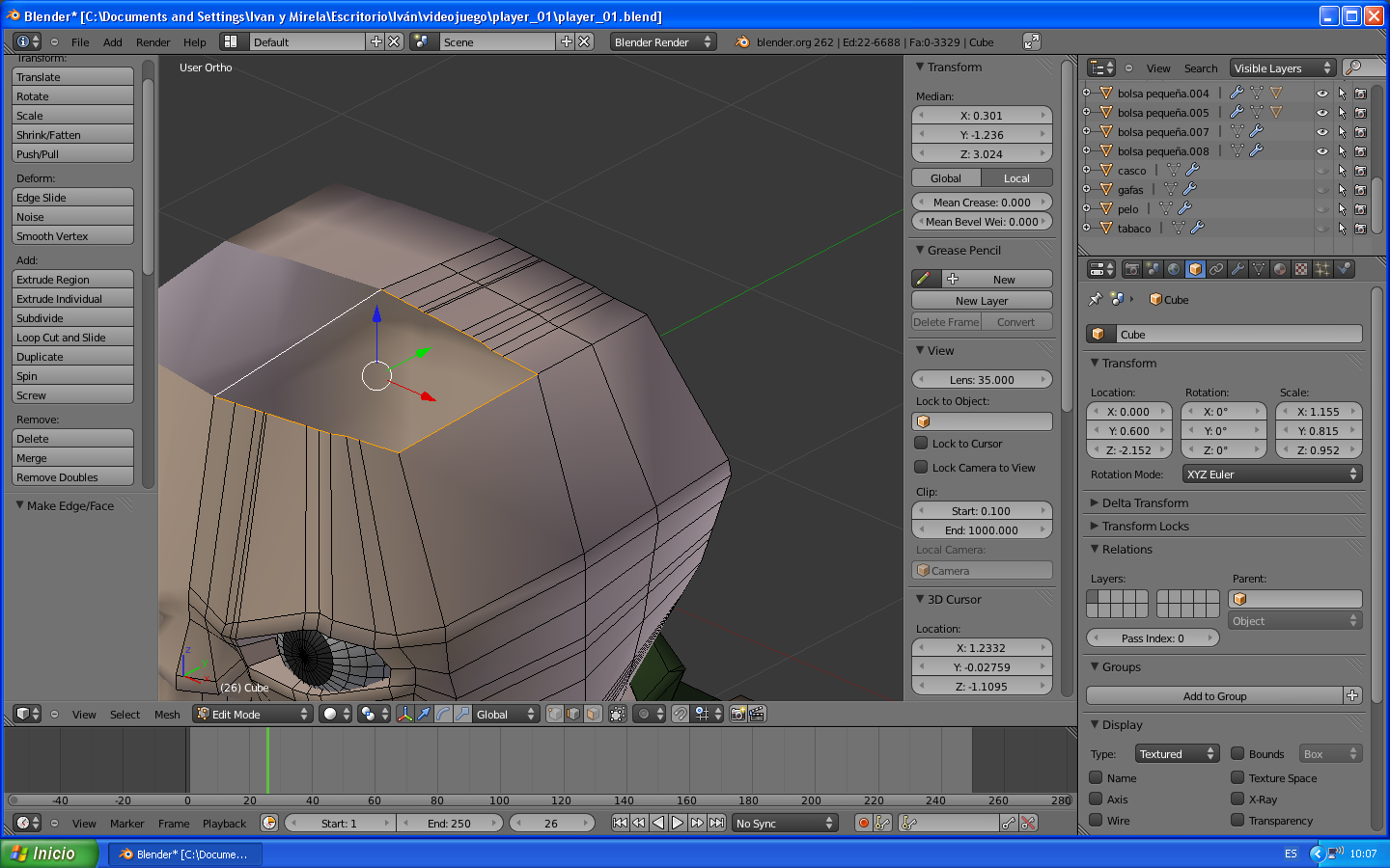 Hola ivanct79, esto es una de las cosas más extrañas que he leído últimamente. :-P Pues ahí te va la técnica, selecciones la cara y la extrudes, y la escalas un poquito, y después tomas la cara interior resultante y la extrudes y la escalas, y luego tomas dos caras resultantes que estén a la altura de los “ojos” y las extrudes y escalas, buscas una céntrica por donde te gustaría la boca y … sí, ¡adivinaste! la extrudes y escalas, muy bien, ahora ve acomodando los vértices para que no se vea todo tan cuadrado y ya esta, facilísimo. ¿No? Entonces puedes ir también a tu modelo que tiene todas esas subdivisiones y selecciona las caras y presiona “f”. Suerte..
