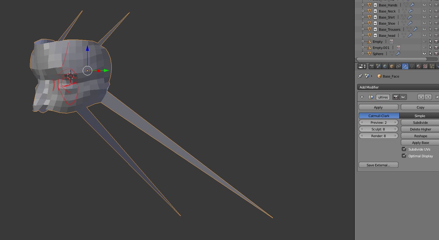 Hola Emma, ese tipo de artefactos son el resultado de usar el modificador de multiresolución de una manera bidireccional, que no es el uso recomendado. La forma de trabajar es ir a un siguiente nivel, únicamente, cuando se ha concluido con el trabajo en el nivel actual, de la forma general a los pequeños detalles, siempre. El no hacerlo de esta manera volviendo hacia atrás entre niveles y hacer una modificación, causa estas alteraciones como resultado, en niveles superiores. La forma de hacer cambios hacia atrás con este modificador, es cambiando al modo de edición y hacerlas desde ahí, esto da buen resultado sin alterar ningún trabajo en los niveles de resolución.
