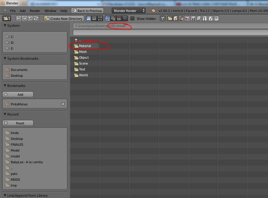 Pd: tengo blender 2.68. He buscado en google cargar materiales pero no lo he logrado ni por link ni por append.