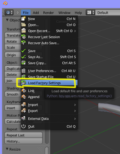 Por cierto, pruena a cargar los valores por defecto de blender a ver si se arregla...