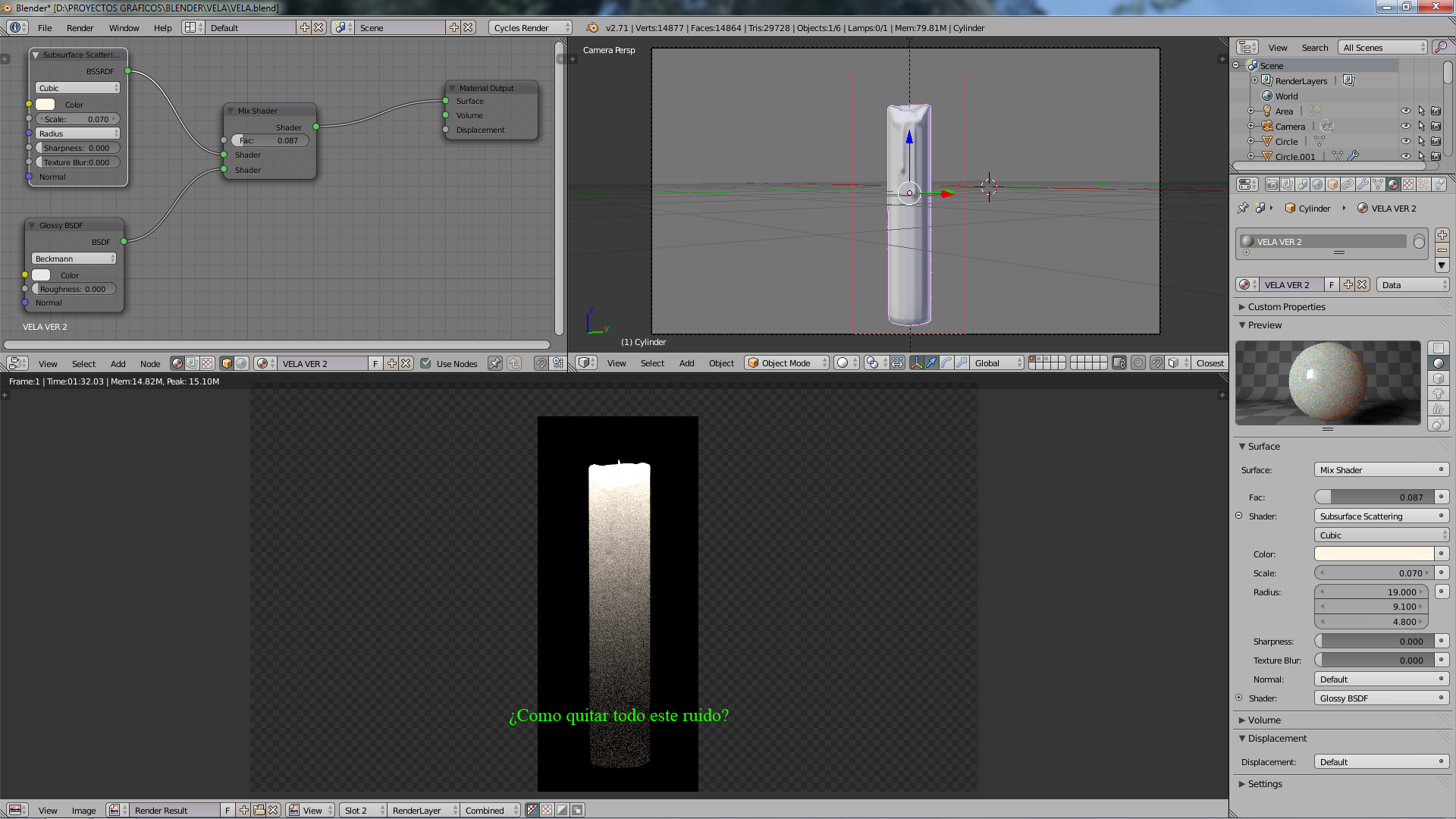 Hola, he renderizado una vela con 500 para los samples, pero como puede verse en la captura, se le nota mucho el ruido ¿como puedo quitarselo?