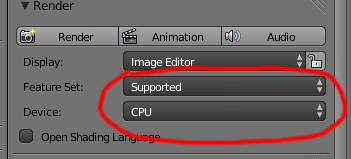 Estas son solo algunas de las opciones que se ven diferentes. CABE ACLARAR QUE EN LA VENTANA DE "RENDER" EN AMBOS BLENDER ESTA ACTIVADO LA OPCION "CUDA"... solo que el blender que tengo instalado se ve asi.