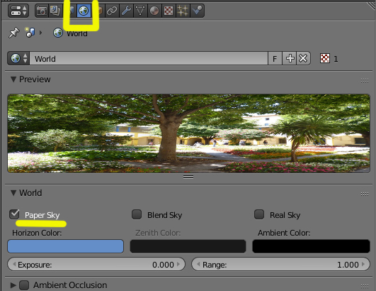 Pues pones la imagen que tienes de fondo y en la textura del World y activas Horizont.