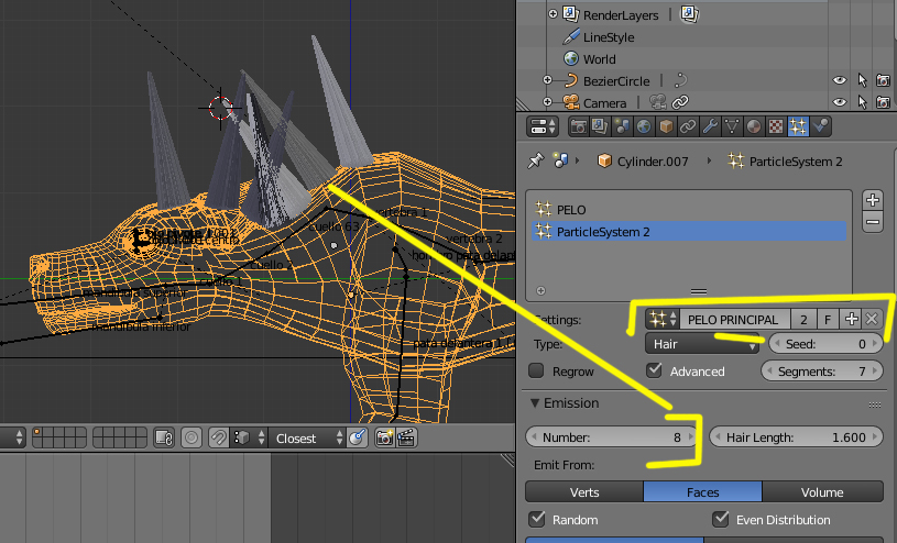 Cambias la que acabas de crear por la otra y ya solo tienes que ir a la emision donde tienes un valor de1 y yo creo que debes de cambiarlo a mas.. pues por cada uno sale uno de esos grupos de pelos...