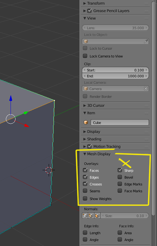 Si quieres NO verlas ves a Properties (letra N) Mesh Display y desmarca las casillas que quieras.