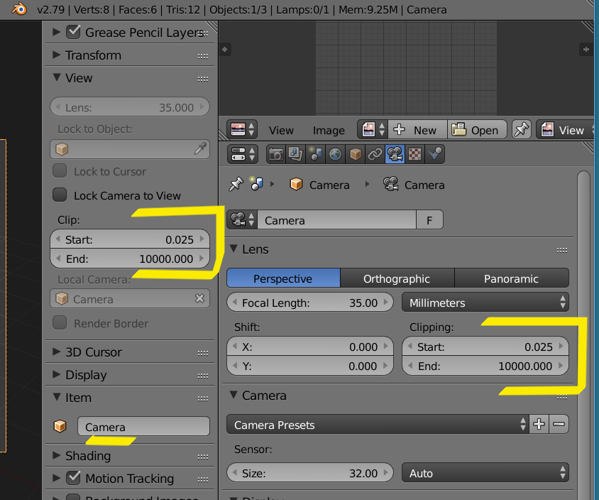 Selecciona la cámara y cambia la distancia de Start en los dos sitios.