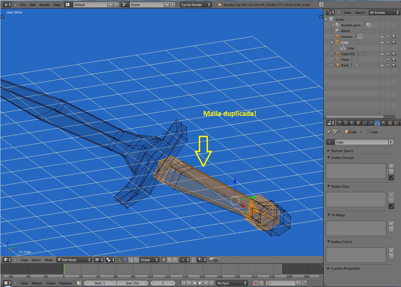 Hey quetal como vas? Bueno prodria ser, aunque no creo que sean las versiones de blender! podria ser que hayas configurado algo mal en las medidas, prova desinstalar el blender y volverlo a instalarlo para dejar todo por defecto a ver si te vuelve a dar el problema! y me contas si sigue dando pues aqui vemos como solucionarlo! y la otra cosa no duplique el mango, en tu modelo vos tenes duplicado el mango por eso lo señale, esos son los vertices que aparecen duplicados pero como estan sobre puestos no se nota, yo en la imagen los separe para que vieras el motivo de los vertices duplicados!