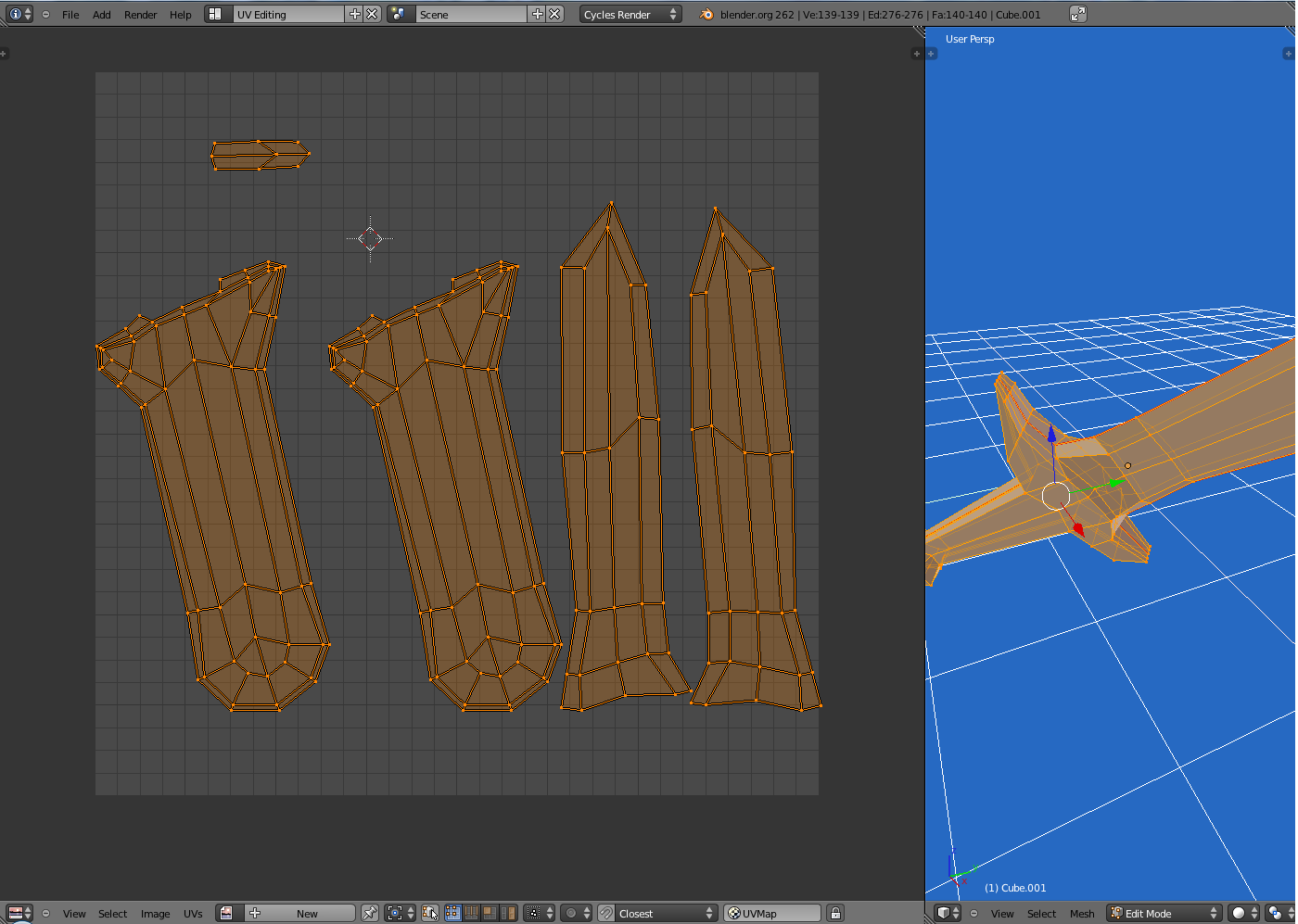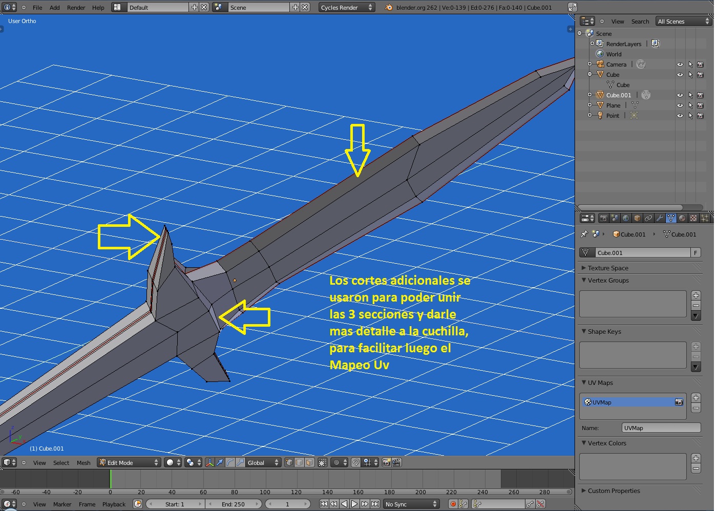 Guai ahora veo el proceso que has utilizado, el problema es que selecciono toda la espada para así poder hacer el unwrap y me sale el error ese que he puesto en el otro comentario, eso será porque tenemos diferentes versiones de blender?