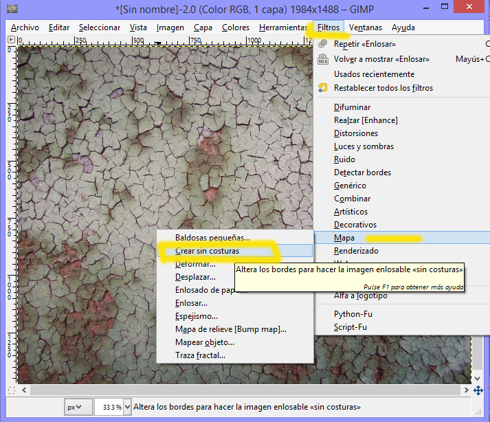 Era............... Crear sin costura... la opción para hacer la textura que tengas, para que sea tileable.