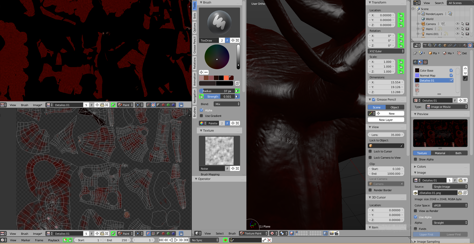 Parece que si grabo una textura pintada, ya no puedo borrar áreas que ya no deseo que estén pintadas.
